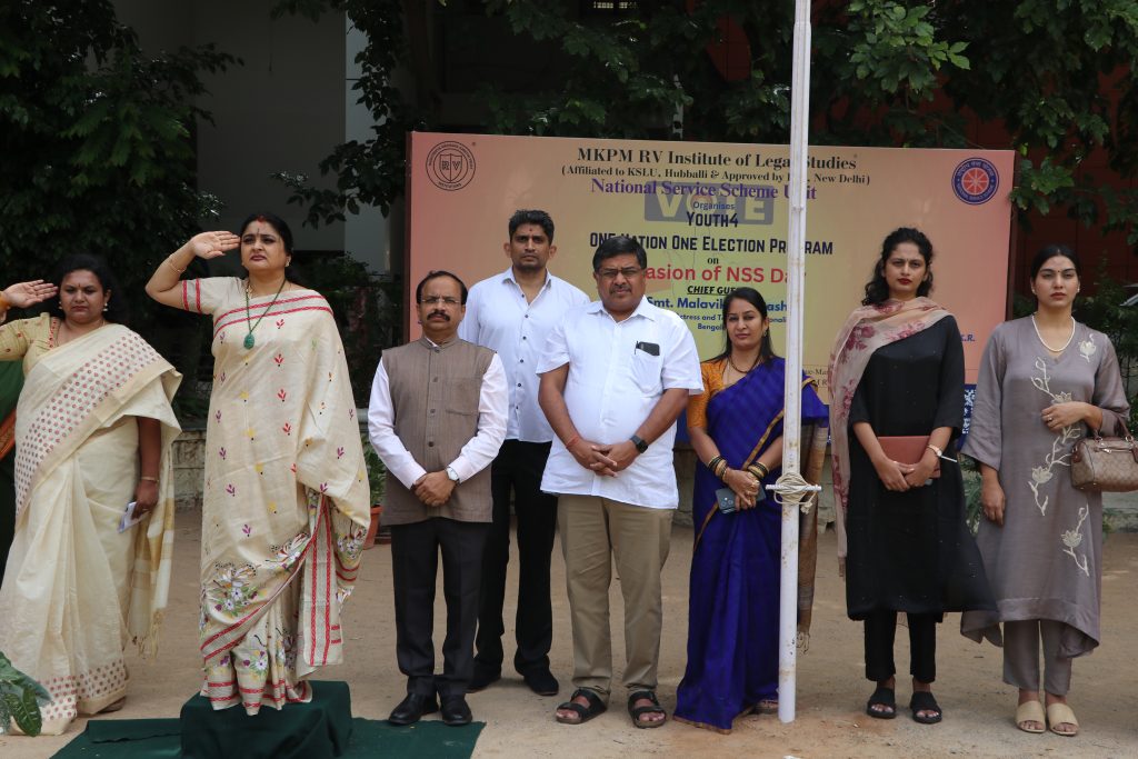 The National Service Scheme (NSS) Unit of MKPM RV Institute of Legal Studies (RVILS) celebrated NSS Day 2025 in collaboration with the Youth4 – One Nation One Election Programme. The programme included a flag hoisting ceremony and an NSS parade, reflecting the spirit of service, discipline and civic responsibility associated with the National Service Scheme.